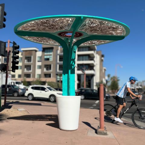 This project showcases how art and built shade come together to provide beauty and shade throughout Phoenix. There will be 19 colorful shade structures designed in collaboration with local artists installed at major intersections and crosswalks. These locations were selected to provide shade through an artistic lens for walking pedestrians who are forced to wait for traffic signal changes. The Office of Heat Response and Mitigation is working with the Streets Transportation Department and the Department of Arts and Culture to complete this project.