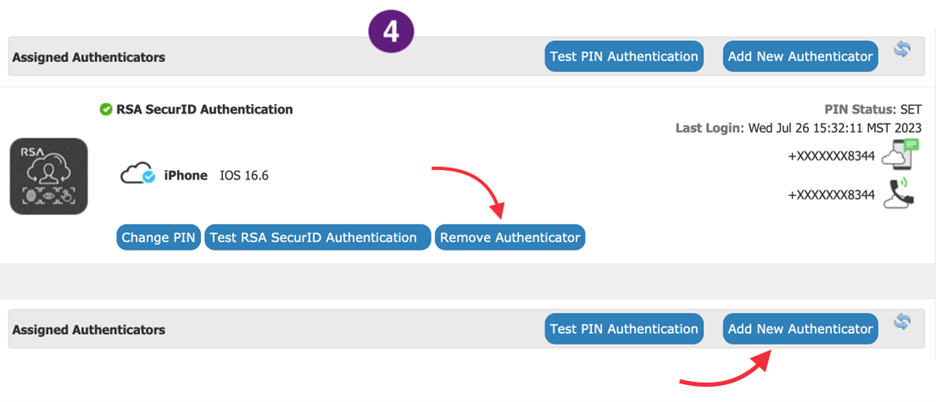 4. Click Remove Authenticator. Then click Add New Authenticator.