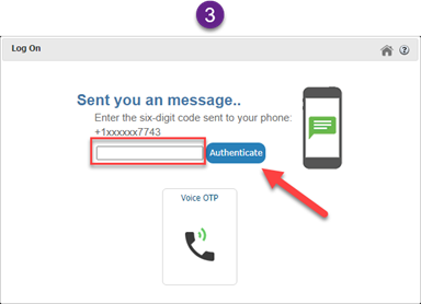 2. Choose SMS OTP or Voice OTP as the authentication method from the options shown to receive a code.