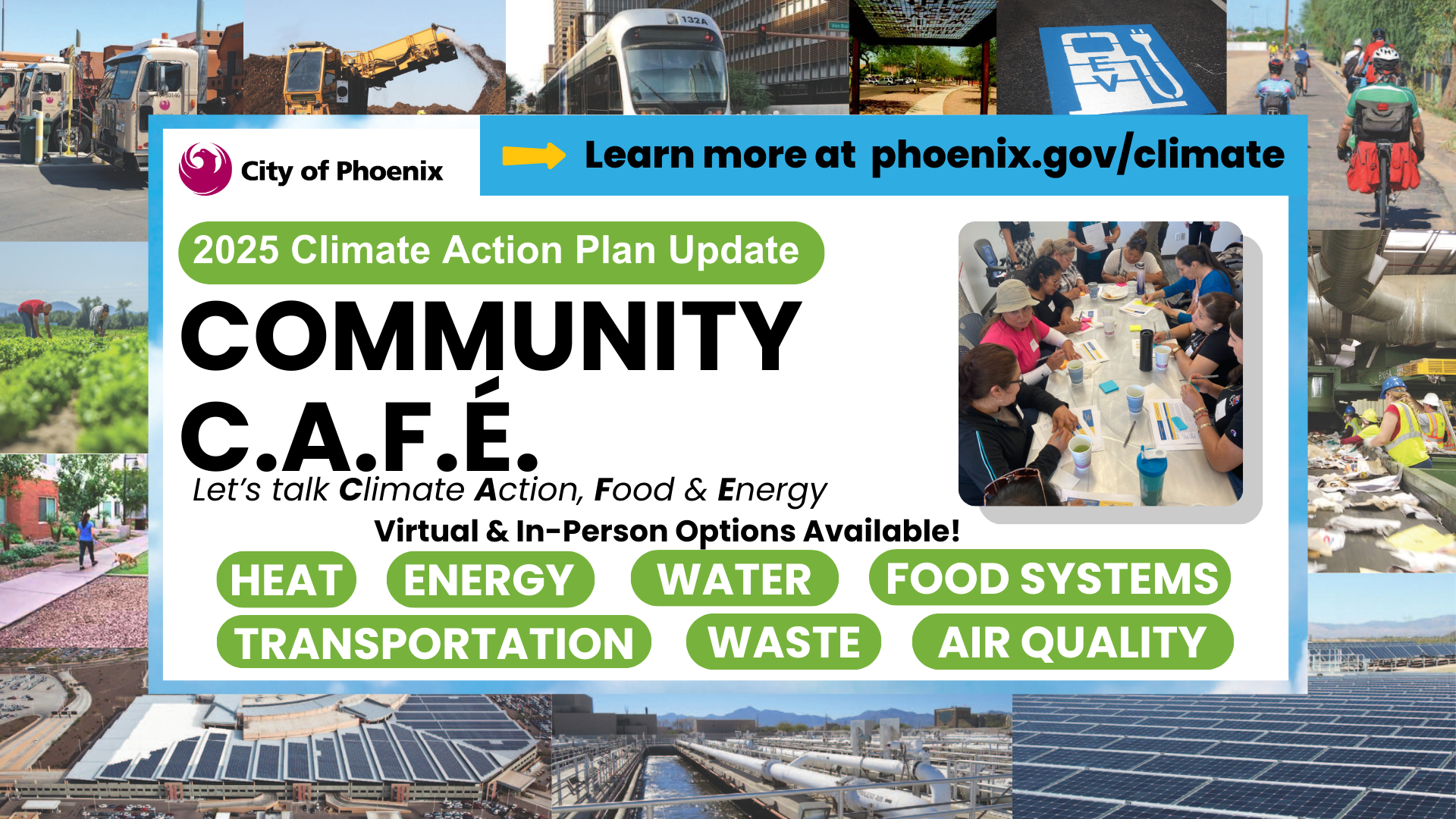 We are updating our Climate Action Plan in 2025! Share your thoughts with the City of Phoenix! Attend a workshop, take our survey, or email us to make your voice heard!