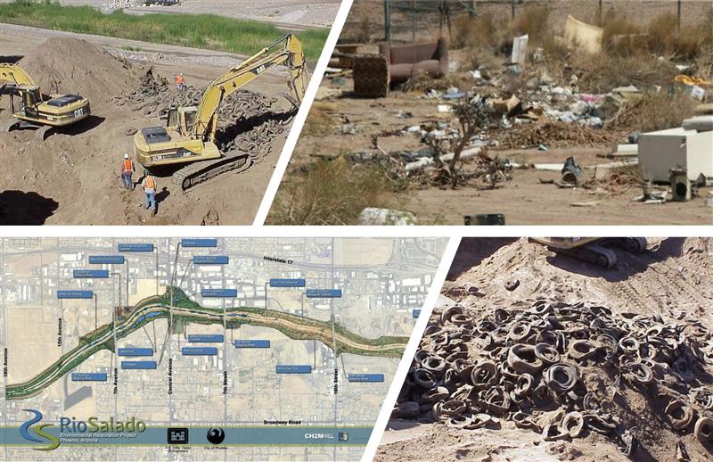The Rio Salado and the surrounding area has a rich cultural history and was first settled by the Hohokam over 2000 years ago. The Hohokam created a canal system that the river fed, and this system allowed them to settle throughout the Salt River Valley. After World War II, many of the cities adjacent to this river and others that feed into it such as the Agua Fria and the Gila River transitioned from farming communities into commercial centers. During this time more than 200 sand and gravel operations located in the floodplain and between the banks of the three rivers. The area along the riverbeds became a dumping ground as more people moved in and business and residential development generated waste and disposal in abandoned mining pits was cheap and easy. Industrial facilities also dot the banks of the river.