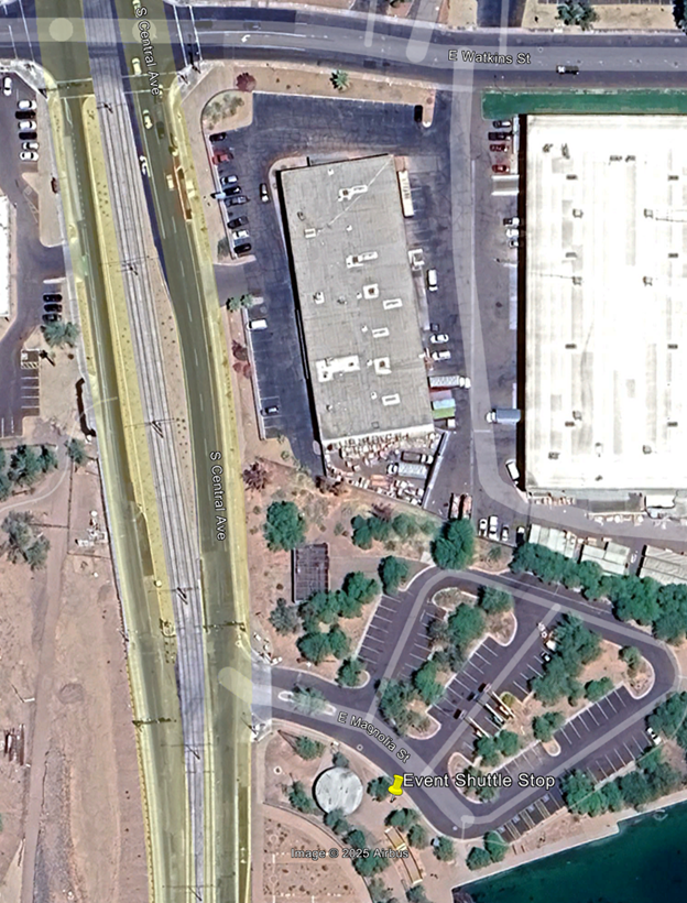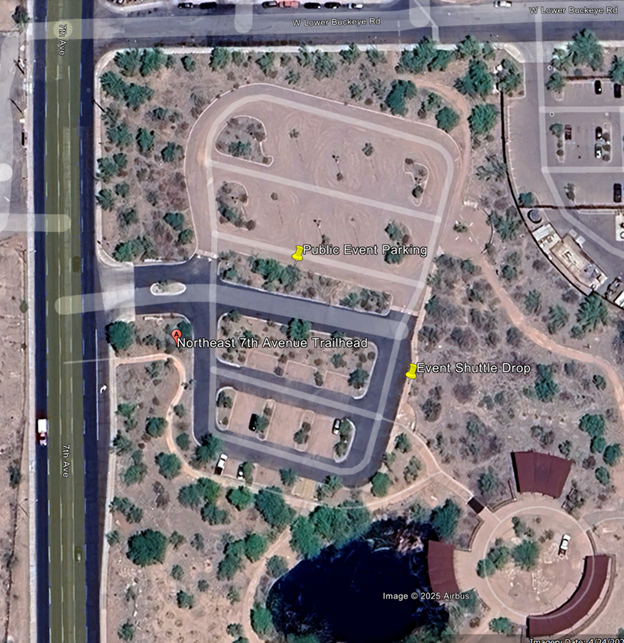 2. Overflow Parking and Shuttle – Central Avenue NE Trailhead: Parking is available at the Rio Salado Central Avenue NE Trailhead at 2439 S. Central Avenue, Phoenix 85004. Meet the shuttle near the restroom building to head over to the event.