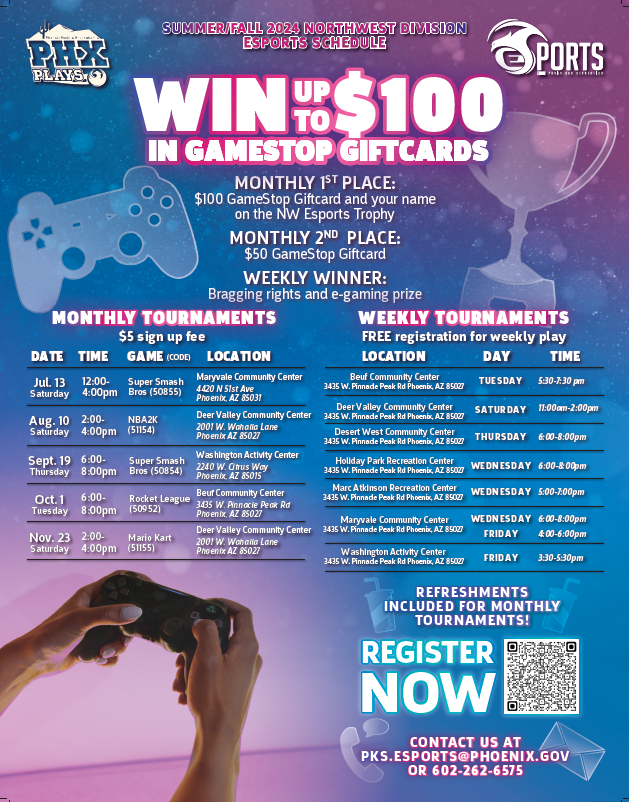 PHX Esports is a great way to meet other gamers in a safe friendly space provided by the Phoenix Parks and Recreation Department.