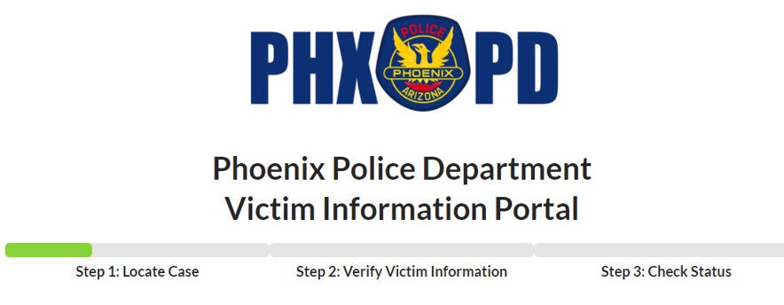The Phoenix Police Department has created a Victim Information Portal to provide our community members with the quality service they deserve. This portal will help crime victims obtain timely, accurate information regarding case status and notification of arrest.