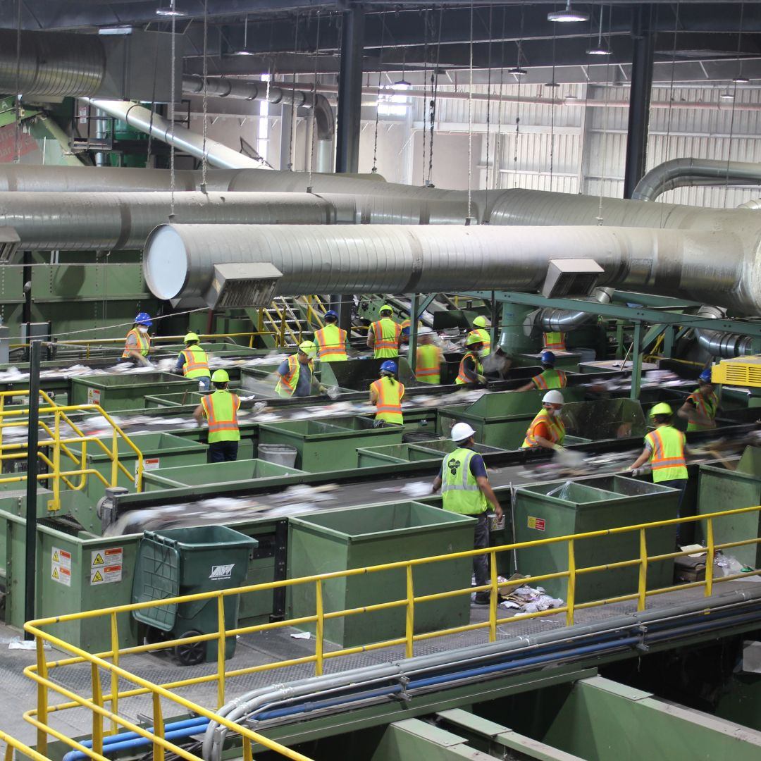 The Zero Waste team hosts tours of North Gateway Transfer Station, where the Materials Recovery Facility (MRF) is located. The MRF is where recyclables are both hand-sorted and machine-sorted.