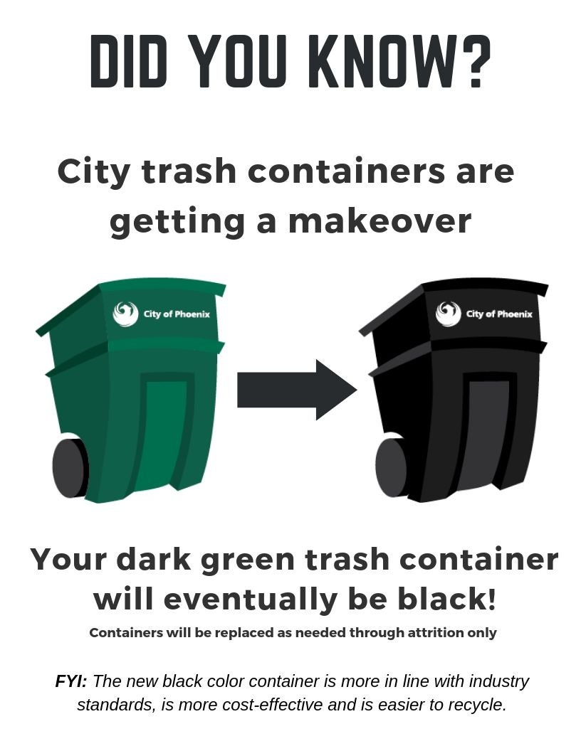 Once you have started city water services to your newly-built home, remember to contact Public Works to request your curbside trash and recycling containers. Call us at 602-262-6251.