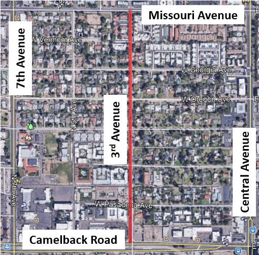 Through this planning effort, the Street Transportation Department seeks to improve safety, access, and comfort for people walking and riding bicycles in the neighborhoods along 3rd Avenue. The study will recommend concepts for sidewalks and innovative facilities, including shade trees and features that will minimize neighborhood cut-through traffic and help reduce vehicle speed.