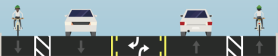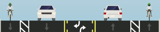 This proposal could remove one travel lane in each direction to add buffered bike lanes. Bike lanes add space between people driving and people walking or biking for increased protection from vehicles, improved safety and added comfort. Additionally, removing one driving lane in each direction to accommodate the buffered bike lanes will help to deter speeding by preventing speeding cars from passing.