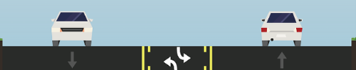 Option A: No change. One driving lane in each direction, with no bicycle lanes and a two-way center turning lane from Cactus Road to Tatum Boulevard. From Tatum Boulevard to Tatum Boulevard (eastern portion of loop) there are two driving lanes with no center turning lane.