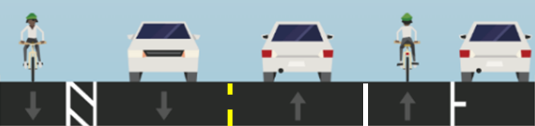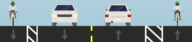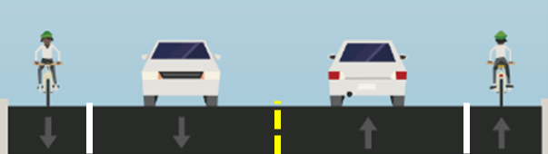 Bike lanes add space between people driving and people walking or biking for increased protection from vehicles, improved safety and added comfort. Additionally, the visual narrowing of the lane widths to accommodate bike lanes will help guide vehicles and deter speeding.
