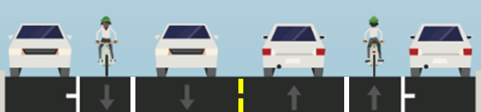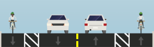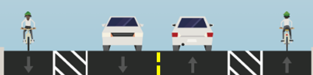 Buffered bike lanes add space between people driving and people walking or biking for increased protection from vehicles, improved safety and added comfort. Additionally, the visual narrowing of the lane widths to accommodate bike lanes will help guide cars and deter speeding.