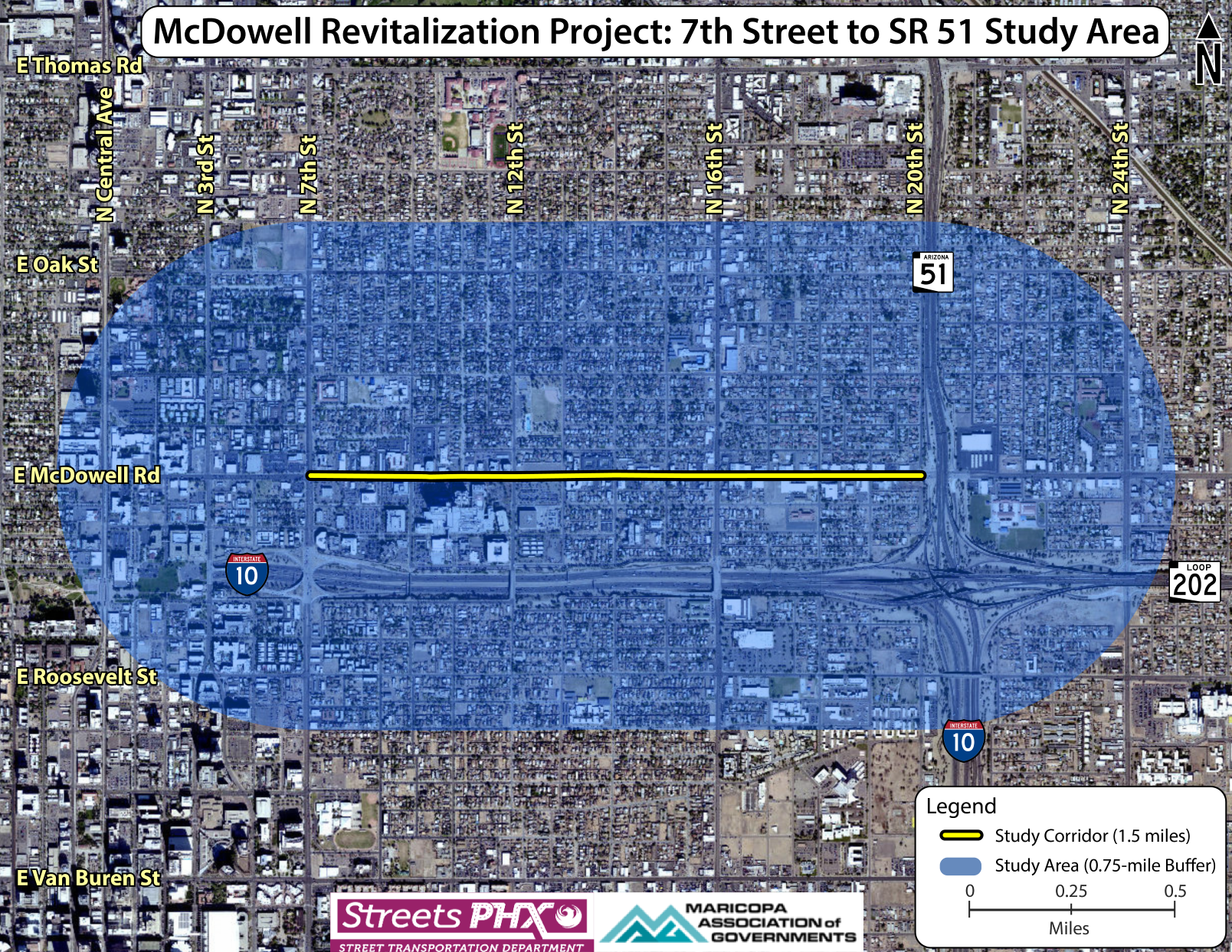 The Phoenix Street Transportation Department is in the study phase of a project to revitalize the McDowell Road corridor between 7th Street and State Route 51 (Piestewa Freeway).