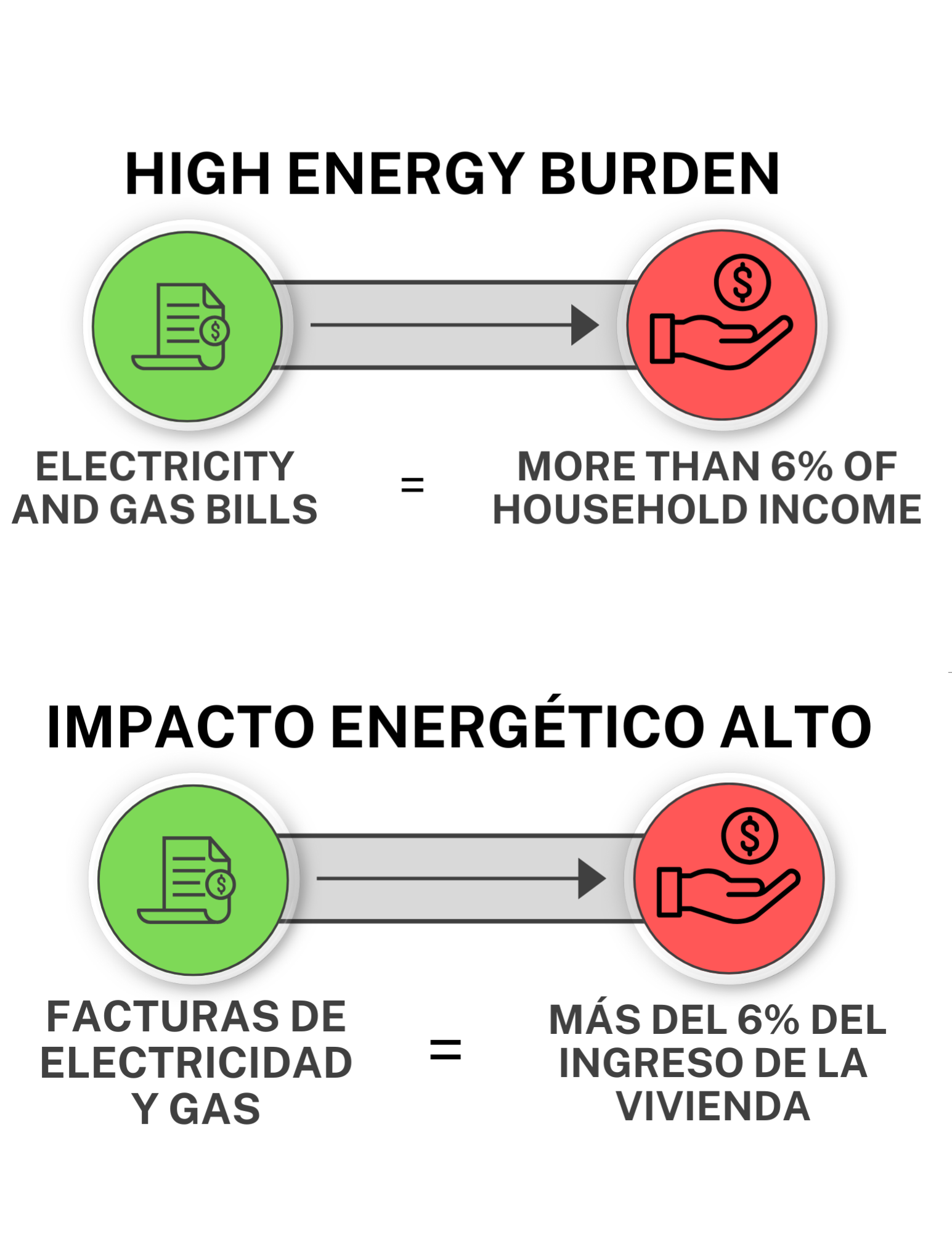 Graphic explaining high energy burden being when electricity and gas bills are more than 6 percent of household income.