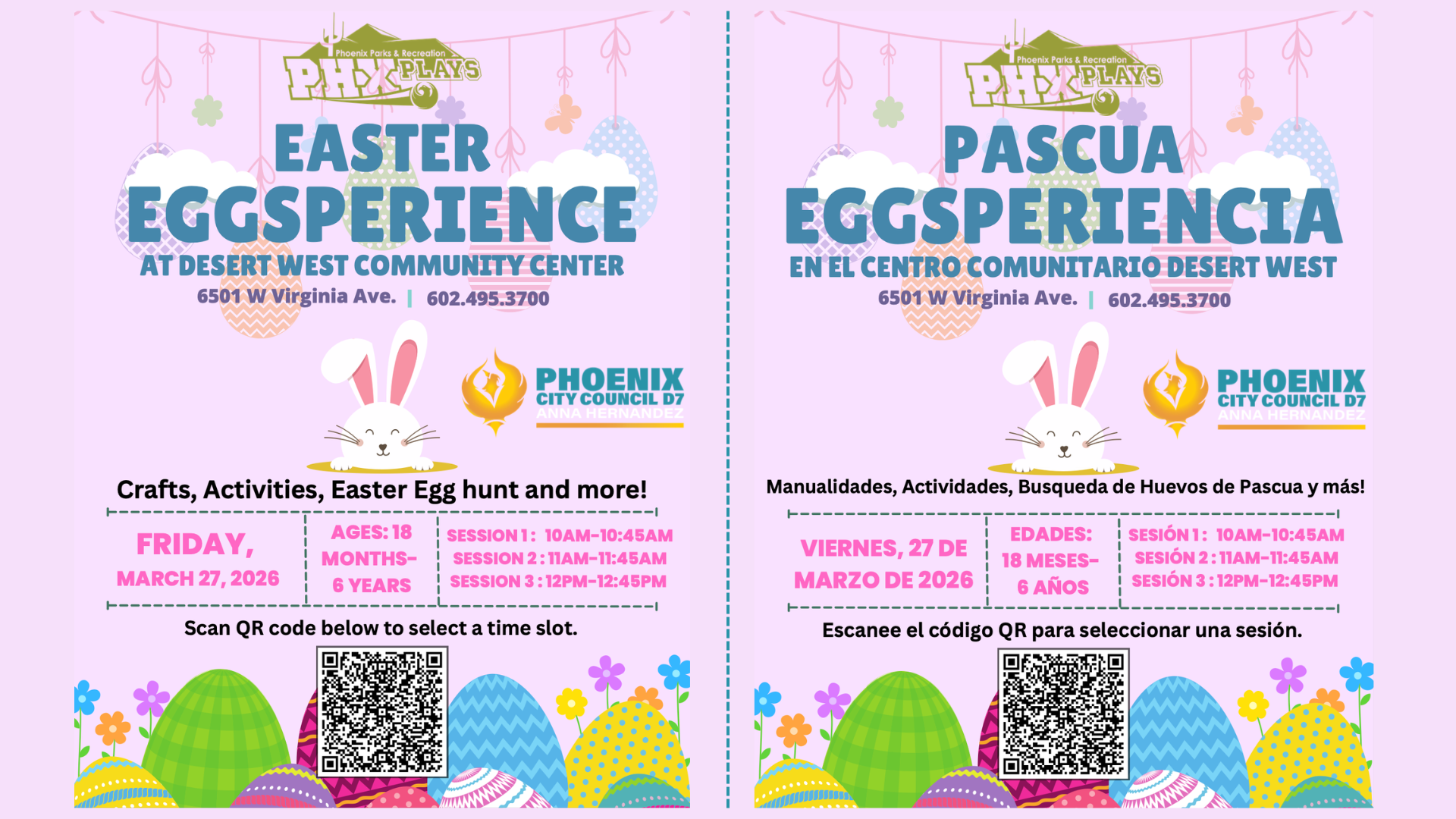 Join Councilwoman Anna Hernandez for an Easter Eggsperience the kids are sure to remember! Kids can expect crafts, activities and an Easter Egg hunt and more! This event is catured for 18 month to 6-year-olds.
