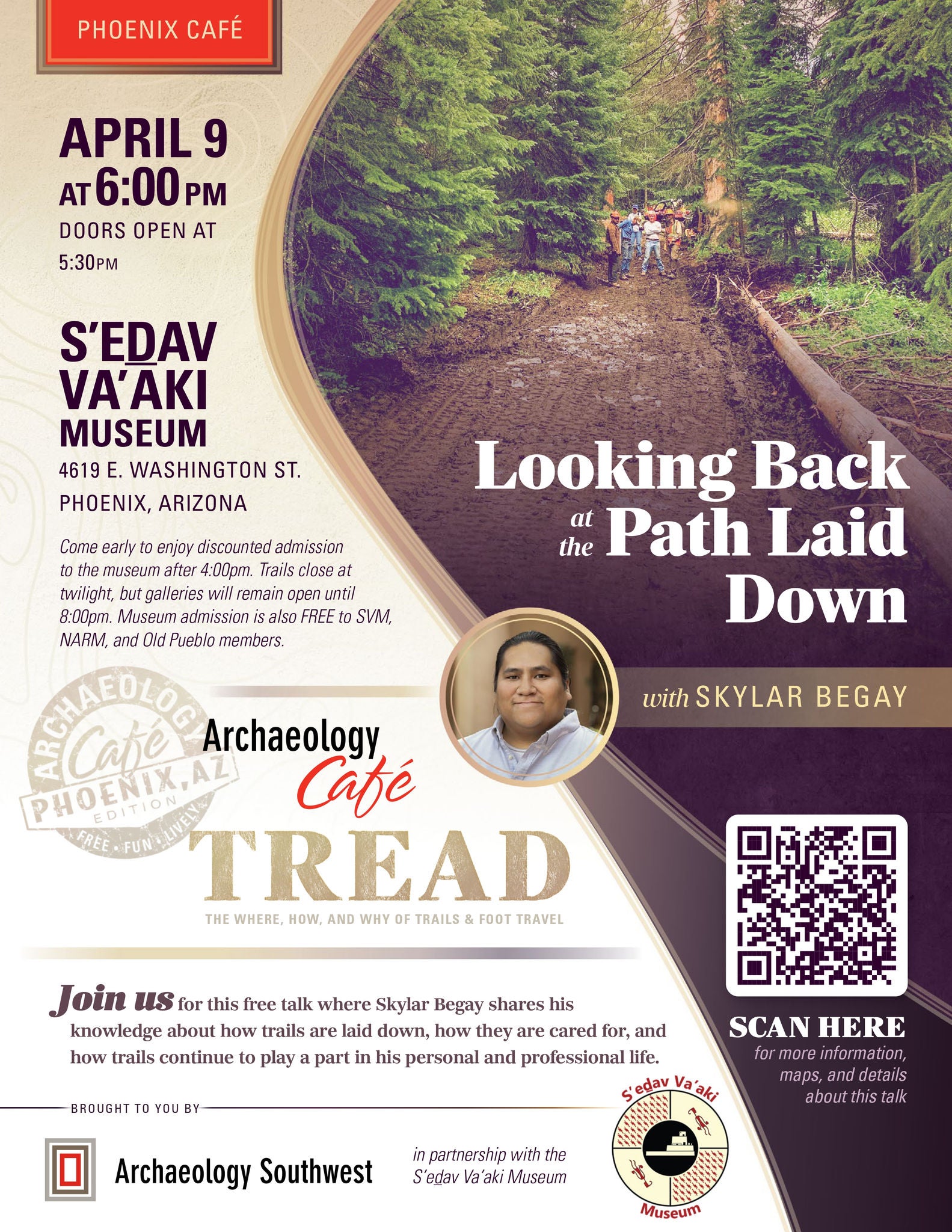 Join us for this free talk where Skylar Begay shares his knowledge about how trails are laid down, how they are cared for, and how trails continue to play a part in his personal and professional life.