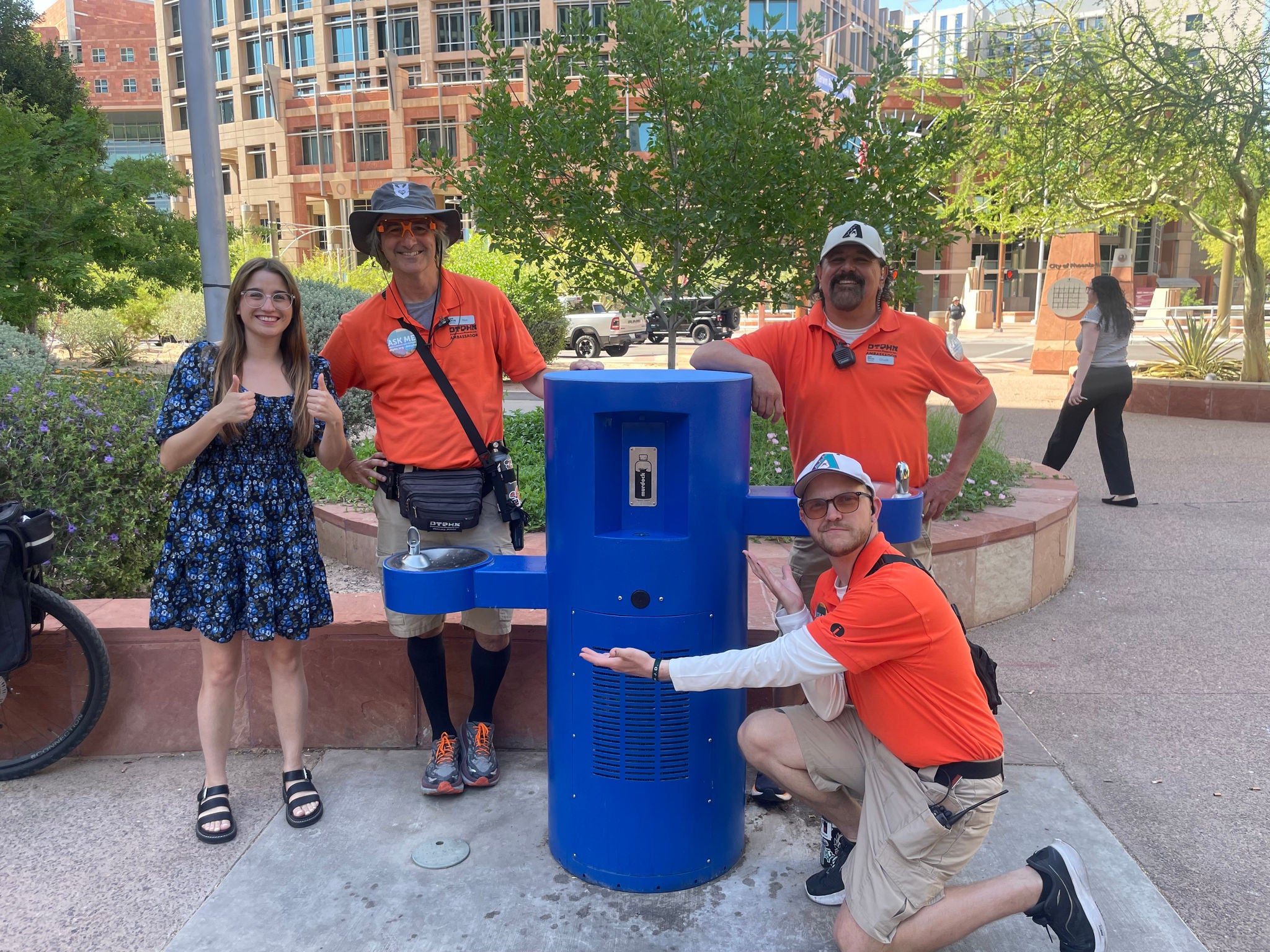 Launched in January 2025, the City's Chilled Drinking Water Initiative is a significant step towards addressing the community's need for access to chilled drinking water in high-density areas of the city. These areas are frequented by people who bike, walk, and use public transportation to get to work, school, and medical appointments. The pilot, in partnership with Downtown Phoenix, Inc., includes three custom-designed, smart drinking water stations with bottle fillers located at the entrance of Phoenix City Hall, near the Phoenix City Council Chambers, and along the Sonoran Bicycle pathway into Downtown Phoenix, near Roosevelt Street and Third Avenue.