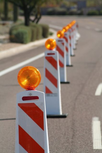 Traffic barricades placed along a road